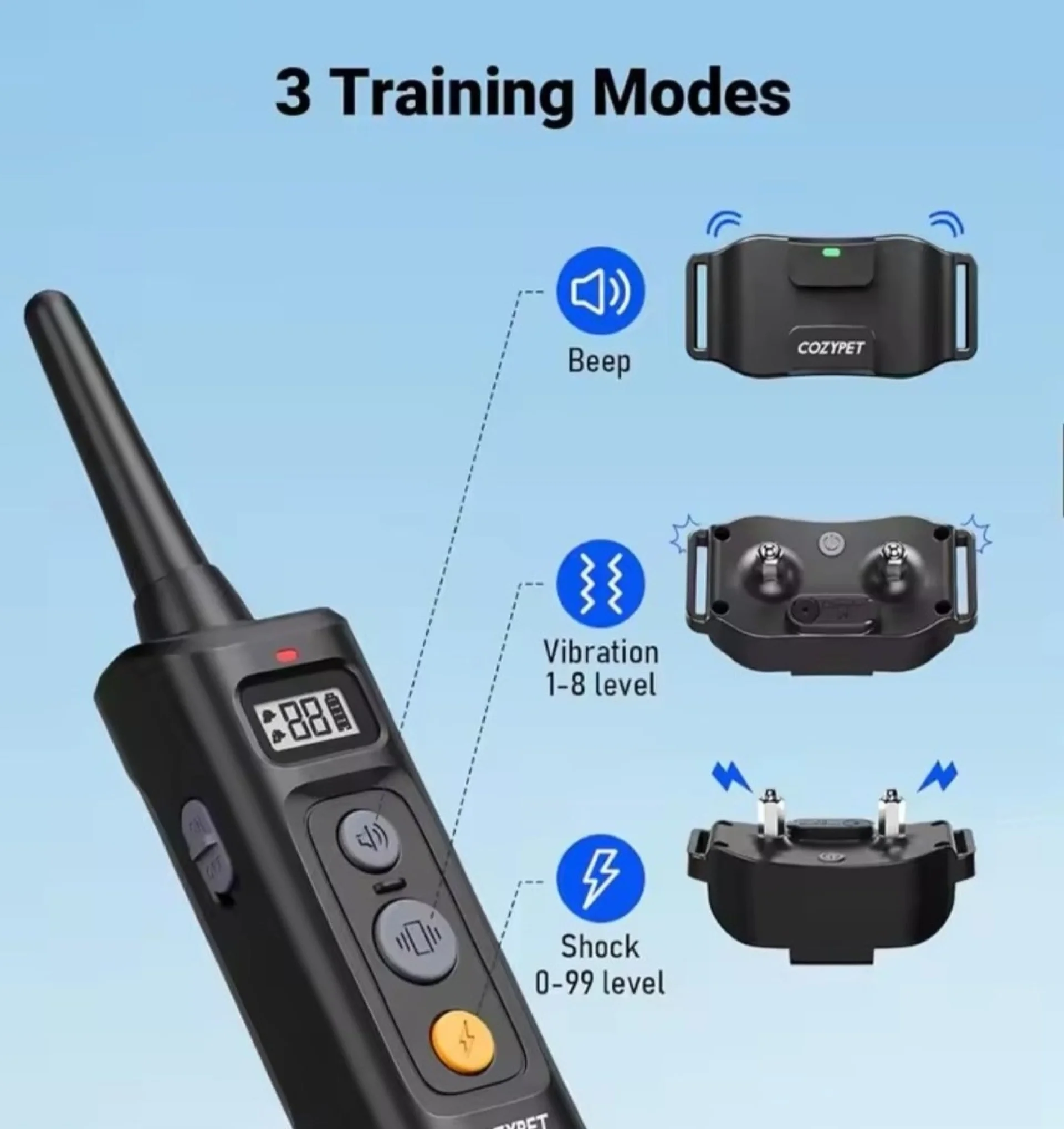 Електронен нашийник DK-325 за обучение на кучета със звук, вибрация и ток